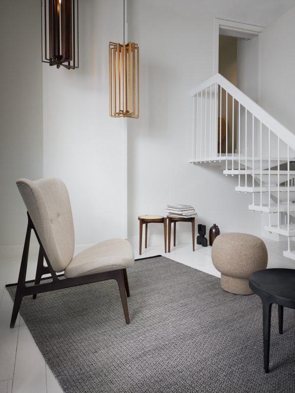 En overflod af smukke nuancer inspireret af naturen giver dybde til det klassiske gåseøje-mønster på dette enkle og sofistikerede, håndvævede tæppe. Uanset om man vælger den gyldne honningfarvede Umbra, Forest inspireret af sprøde bøgeblade, klassisk grå, sort eller midnatsblå, er farverne stærke nok til at skille sig ud og dæmpede nok til at passe til diverse træsorter i indretningen. Ved at blande højkvalitets uld og hør i en meget stram vævning har vi bevidst skabt en lidt slidt overflade, som kun bliver smukkere med tiden.
