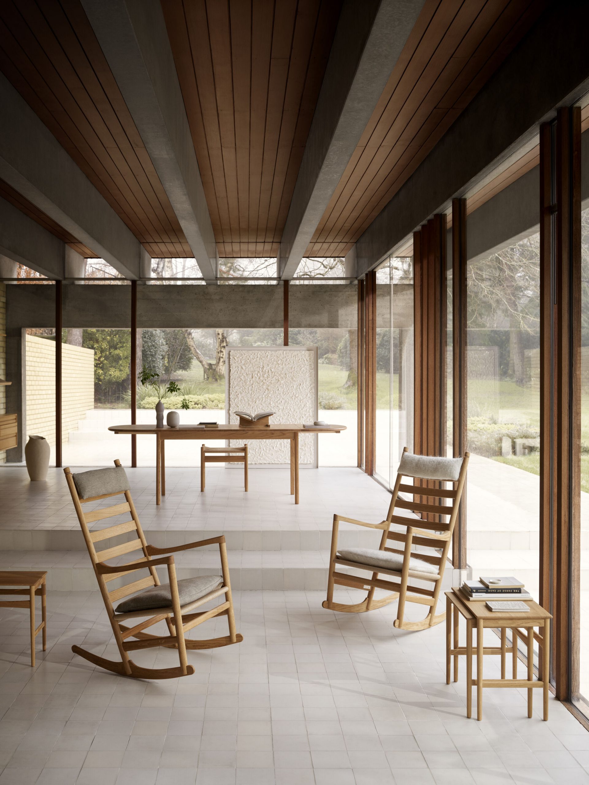 CH45 Gyngestolen blev skabt for Carl Hansen & Søn i 1965 som en del af en omfattende møbelserie, der har alle de egenskaber, som er så typiske for Wegners design. Stolen er et smukt eksempel på moderne nordisk designæstetik, hvor enkelhed og elegance går op i en højere enhed. Fås med hynde samt nakkepude og i forskellige træsorter og behandlinger.
