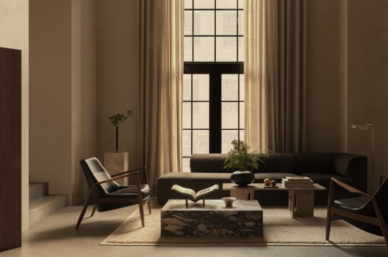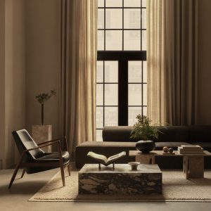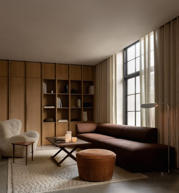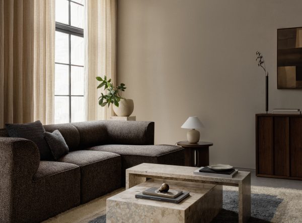 Inspireret af arkitekturen tager Eave modulsofa sit navn fra de nederste kanter af taget, der hænger ud over en væg. Sofaens karakteristiske detalje er dens indvendige “udhæng” – buede polstrede armlæn, der giver sofaen dens udtryksfulde karakter.