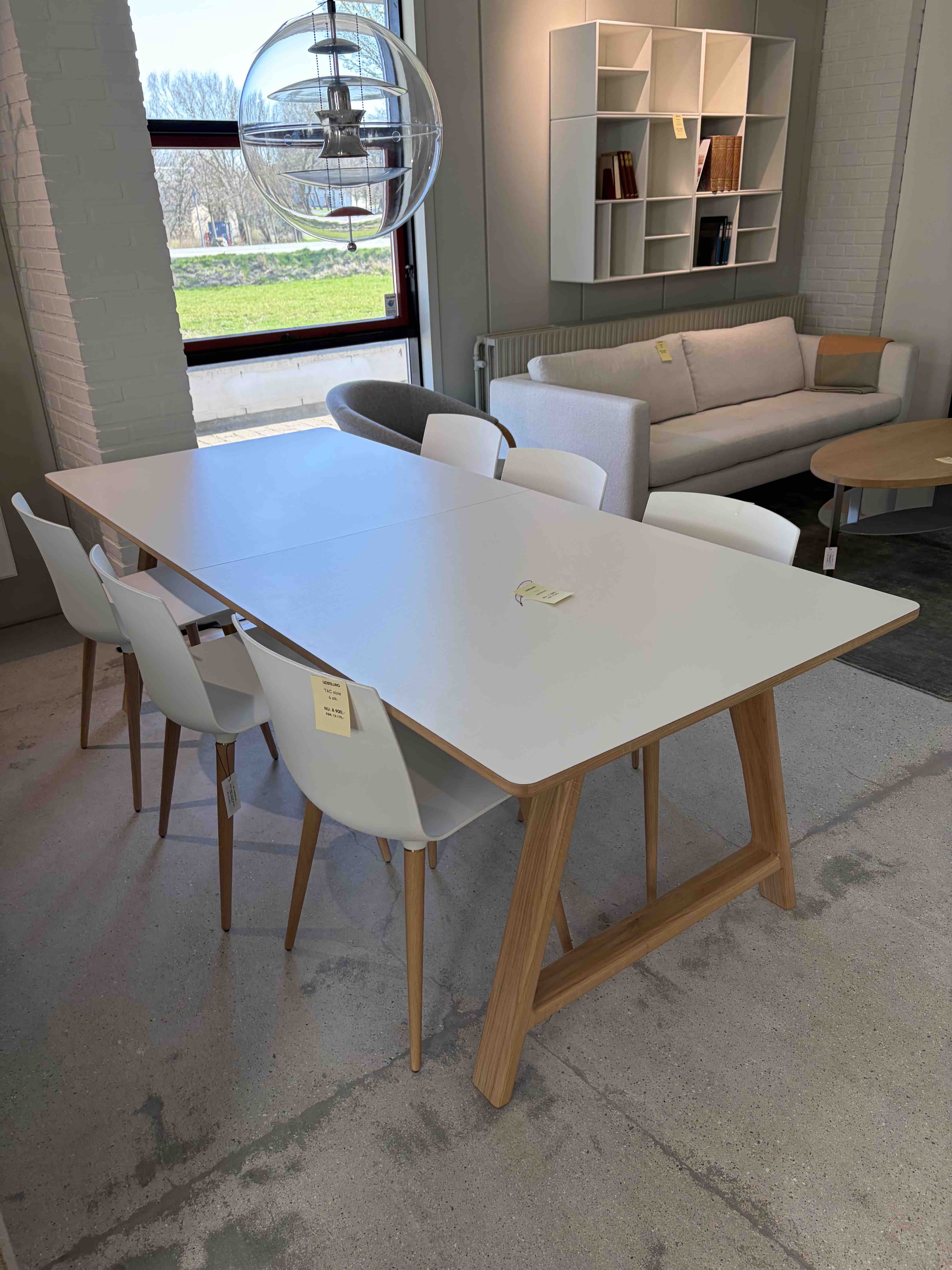 Andersen T11 spisebord i eg/matlak med hvid laminatplade. 220 x 95.