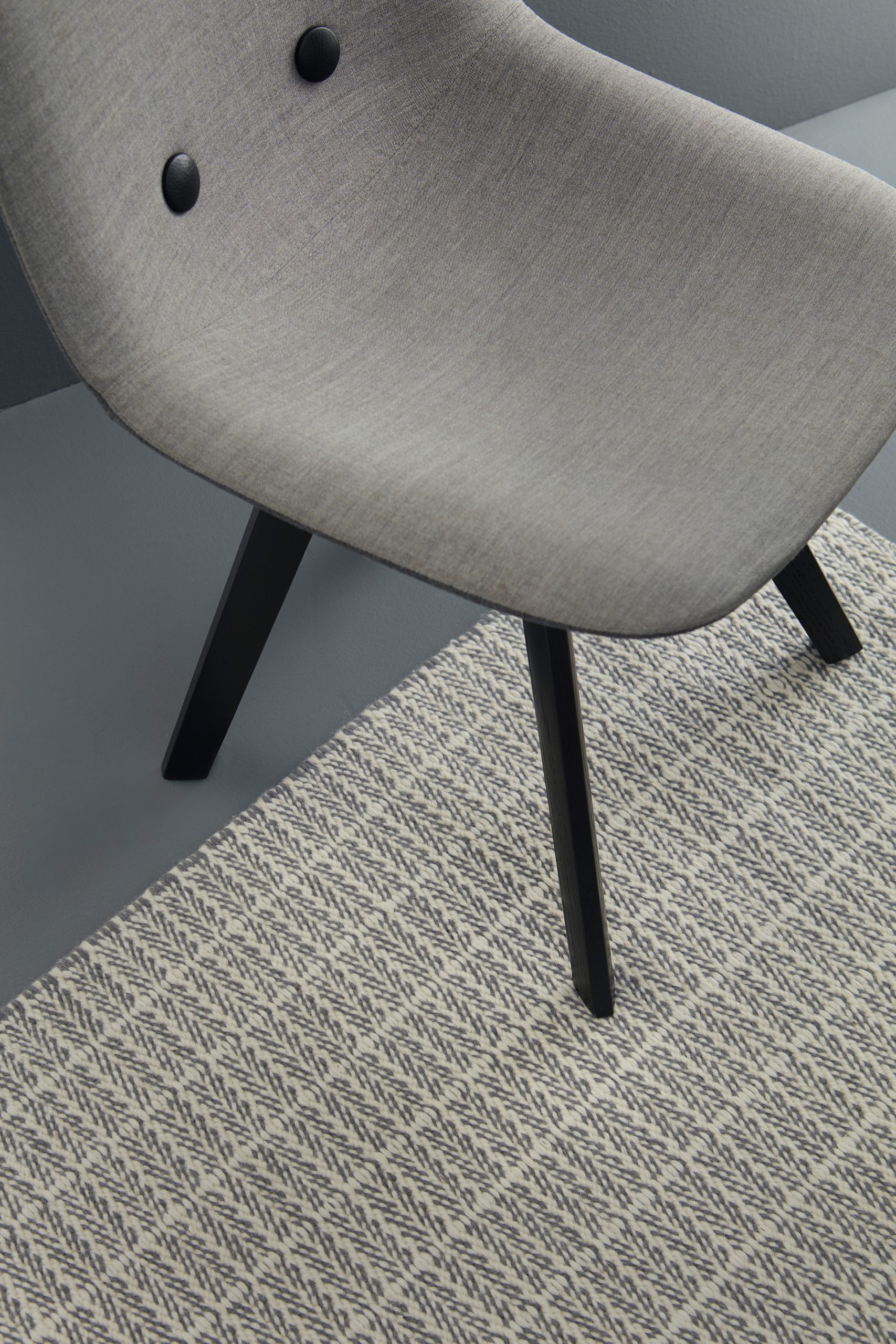 Et vendbart håndvævet, uldtæppe, som mikser et enkelt moderne mønster, bløde farver og udsøgt kvalitet. Ulden er den bedste fra New Zealand, og det meget holdbare tæppe kommer i fire forskellige farvekombinationer i naturlige nuancer.